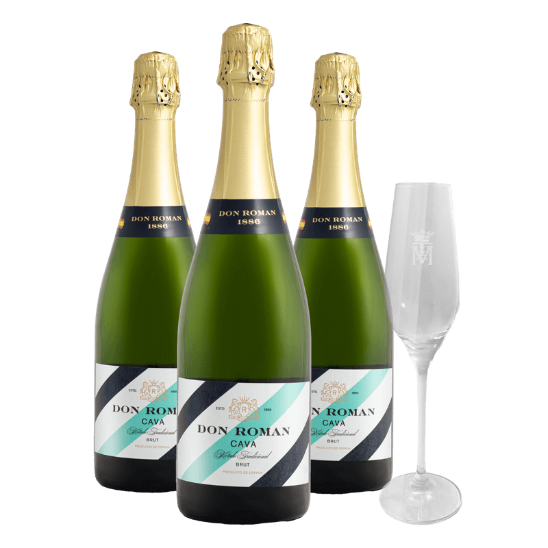Kit 3 Espumantes Cava Don Román Brut + Taça de Cristal Grátis