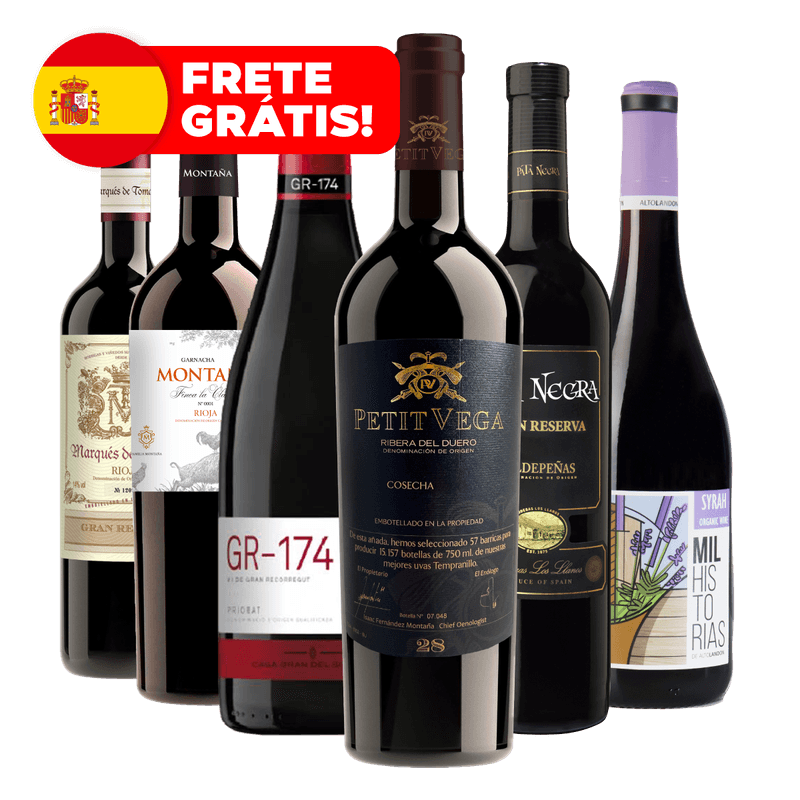 O Kit 6 Vinhos Espanhóis integra a série Ícones do Mundo e reúne rótulos que traduzem a identidade vitivinícola da Espanha. Da tradição da Rioja à potência da Ribera del Duero, passando por Manchuela, Valdepeñas e Priorato, esta seleção revela como clima, solo e altitude moldam diferentes estilos. Um kit pensado para comparar regiões emblemáticas e entender por que a Espanha ocupa lugar central no mapa do vinho. Surpreenda-se!