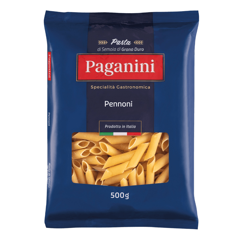 O Pennoni Paganini é uma variação maior do penne, criado para compor pratos mais robustos. Suas ranhuras seguram molhos à base de legumes e tomates rústicos, enquanto a sêmola de grano duro assegura cozimento perfeito e ótima textura. Direto da Puglia, para receitas cheias de personalidade!