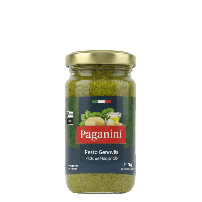 O Pesto Genovês de Manjericão Paganini (Pesto alla Genovese Paganini) traz o autêntico sabor da culinária italiana em um antepasto saboroso e aromático. Produzido na Itália com manjericão, pinoli, queijo grana padano, pecorino romano, azeite de oliva extravirgem e outros ingredientes locais, é perfeito para acompanhar massas, bruschettas e carnes brancas. Experimente!