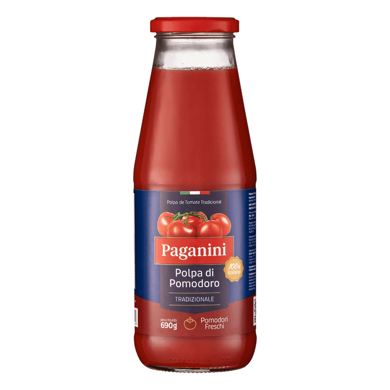 A Polpa de Tomate Tradicional Paganini é produzida na Campânia, Itália, com tomates frescos selecionados e processados para garantir textura homogênea e sabor autêntico. Ideal como base para diferentes molhos, preserva a pureza e a intensidade da fruta recém-colhida. Experimente!